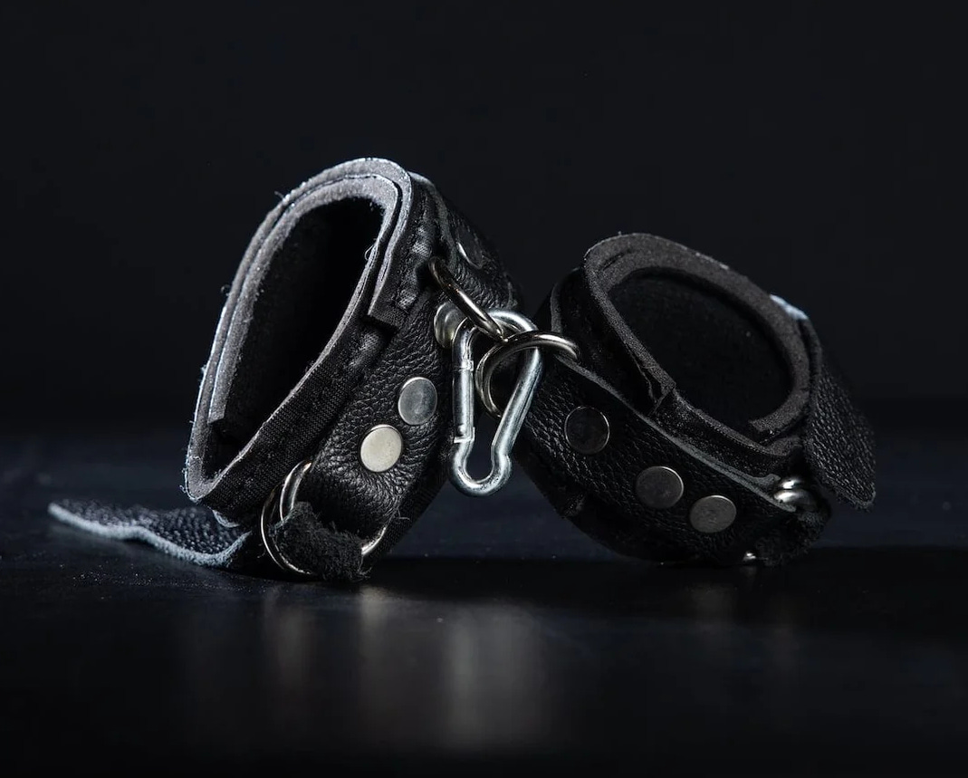 He crossed to the bedroom, remembering the heavy chest at the foot of her bed. The lid creaked softly as he opened it. Inside he found the tools he needed: a strappado-style arm binder, a black ball gag, and a pair of adjustable thigh-to-ankle restraints with double straps, buckled and padded with suede. He gathered them up and returned. She hadn’t moved, but when she saw what he carried, her breath faltered. Still, she didn’t flinch.