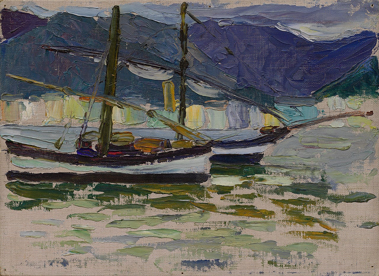 They moved slowly down the gallery, the hush inviting a kind of reverence. The next canvas—Fishing Boats, Sestri, 1905—was a seascape in slashes of lavender, teal, navy, and green. The water shimmered with iridescence; the boats floated in as if summoned from a dream.